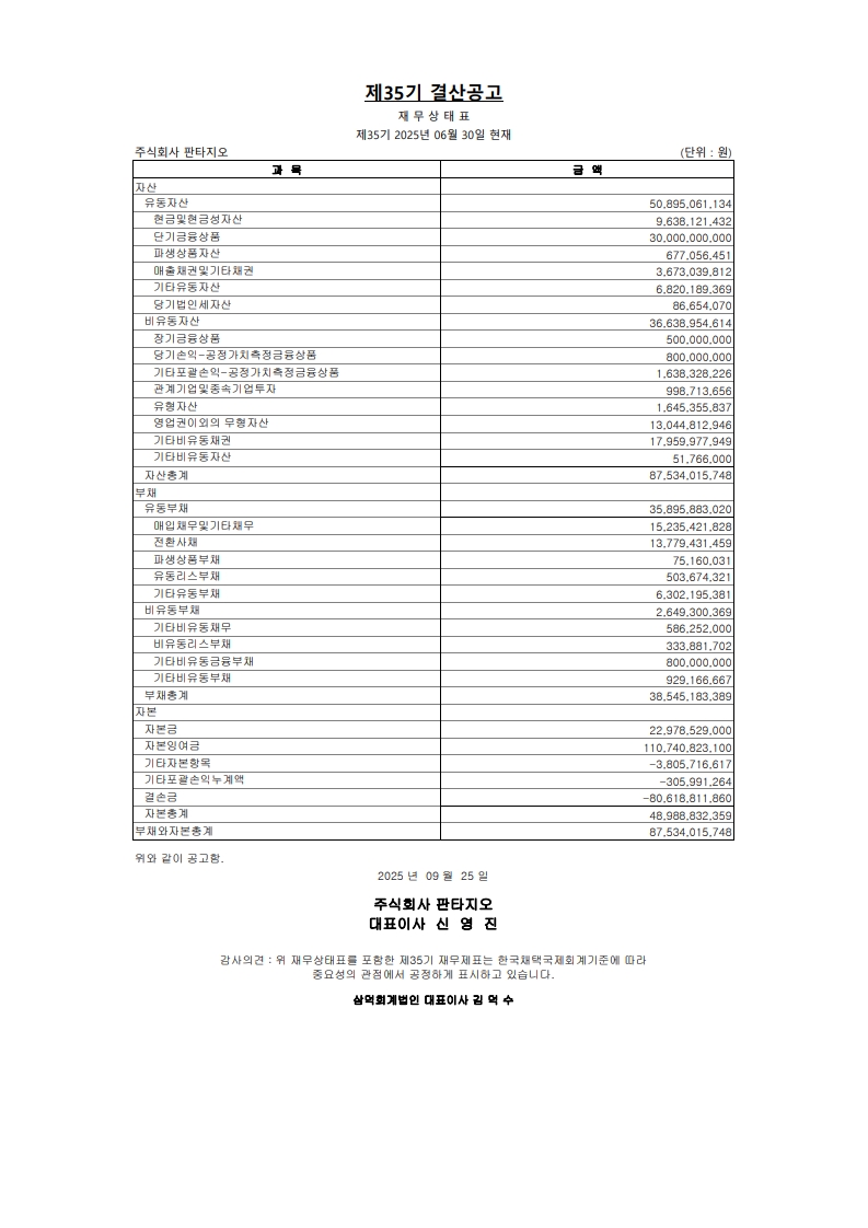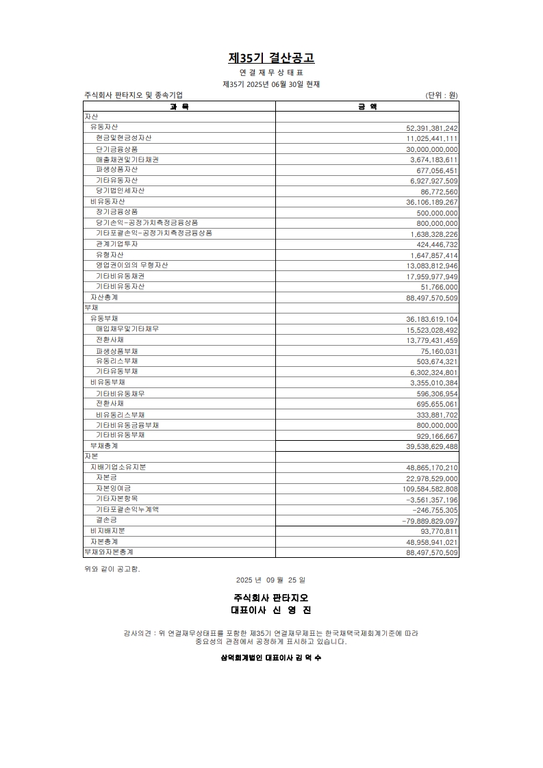 81 | 제35기 사업보고서 및 감사보고서 | 25.09.17 |